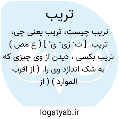 تریب. [ ت َ / ت ِ ی َ ] ( ع اِ ) لغتی در تراب. ( از تاج العروس ) ( منتهی الارب ). تراب و خاک. ( ناظم الاطباء ). خاک و زمین. ( از اقرب الموارد ).