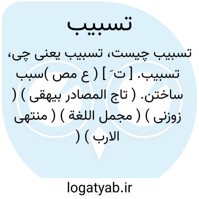آنچنان غم بود از تسبیب رب.مولوی.|| دشنام دادن. ( منتهی الارب ) ( ناظم الاطباء ). فراوان دشنام دادن. ( از متن اللغة ) ( از اقرب الموارد ) ( از المنجد ): او را بدین سبب به انواع تعذیب و تسبیب فراگرفتند. ( ترجمه تاریخ یمینی چ 1 تهران ص 360 ). || راست و برابر کردن مجرای آب. ( از متن اللغة ) ( از اقرب الموارد ) ( از المنجد ): سببه ُللماءِ مجری؛ سَوّاه ُ. ( متن اللغة ) ( اقرب الموارد ) ( از المنجد ). || در اصطلاح حقوقی آنکه کسی براثر ترک یا انجام عملی سبب تلف یا نقصان مالی گردد که این در صورت اول باید مثل یا قیمت مال تلف شده و در صورت دوم باید از عهده نقص قیمت آن مال برآید. این اصطلاح با اتلاف از این جهت فرق دارد که در اتلاف فعل مثبت و بلاواسطه موجب تلف است، بخلاف تسبیب که فعل یا ترک و باواسطه سبب تلف مال میشود. ( از حقوق مدنی امامی ج 1 ص 392 و ماده 331 قانون مدنی ). || مال متعذرالوصولی را چون رزق کسی قرار دادن، تا مرتزق در وصول آن با عامل یاری دهد. ( یادداشت بخط مرحوم دهخدا ): صواب آن است که از خازنان نسختی خواسته آید به خرجها که کرده اند و آن را به دیوان عرض فرستاده شود و منکه بوسهلم لشکر را بر یکدیگر تسبیب کنم و براتها بنویسند تا این مال مستغرق شود و بیست گانی نباید داد یکسال، تا مالی به خزانه باز رسد.( تاریخ بیهقی چ ادیب ص 258 ). من که بونصرم باری هرچه امیر محمد مرا بخشیده است از زر و سیم و جامه نابریده و قباها و دستارها و جز آن همه معد دارم... و هم امروز به خزانه بازفرستم پیش از آنکه تسبیب کنند وآب بشود. ( تاریخ بیهقی ایضاً ص 259 ). و اتباع خدم رابه تسبیب بر سر عمال کرد. ( ترجمه تاریخ یمینی یادداشت بخط مرحوم دهخدا ).