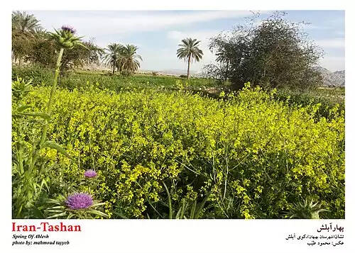 تشان. [ ت َ ] ( اِخ ) دهی است از دهستان ریز در بخش خورموج شهرستان بوشهر که در 102 هزارگزی جنوب خاور خورموج، در دامنه کوه ریز واقع است. دامنه ای گرمسیر است و450 تن سکنه دارد آب آن از قنات و چاه و محصول آنجاخرما و لبنیات است. شغل اهالی زراعت و گله داری است.راه مالرو دارد. ( از فرهنگ جغرافیایی ایران ج 7 ).