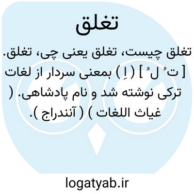 تغلق. [ ت ُ ل ُ ] ( اِ ) بمعنی سردار از لغات ترکی نوشته شد و نام پادشاهی. ( غیاث اللغات ) ( آنندراج ).