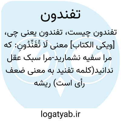 [ویکی الکتاب] معنی لَا تُفَنِّدُونِ: که مرا سفیه نشمارید-مرا سبک عقل ندانید(کلمه تفنید به معنی ضعف رأی است)