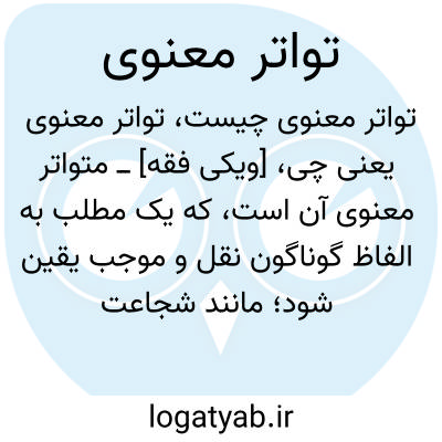 [ویکی فقه] ـــ متواتر معنوی آن است، که یک مطلب به الفاظ گوناگون نقل و موجب یقین شود؛ مانند شجاعت علی ـ علیه السلام ـ به نحوی که تمام راویان، شجاعت او را نقل کرده اند؛ اگر چه عبارات آن ها مختلف است. ـــ تواتر معنوی به کثرت اخبار مشترک به حسب معنا فقط به تعداد یقین آور اطلاق می شود.