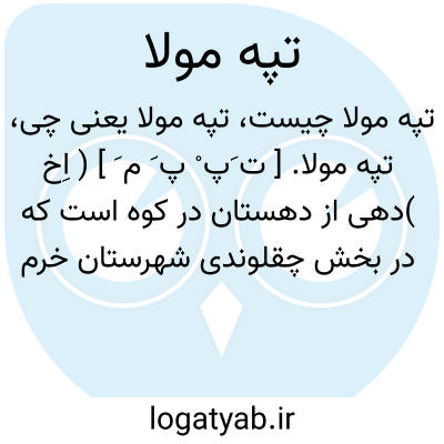 تپه مولا. [ ت َپ ْ پ َ م َ ] ( اِخ )دهی از دهستان در کوه است که در بخش چقلوندی شهرستان خرم آباد و در نه هزارگزی خاور چقلوندی و نه هزارگزی جنوب راه شوسه فرعی خرم آباد به چقلوندی واقع است.کوهستانی و سردسیر است و 90 تن سکنه دارد. آب آن ازچشمه و محصول آن غلات و صیفی و لبنیات و شغل اهالی زراعت و گله داری است صنایع دستی زنان فرش و سیاه چادر بافی است. راه مالرو دارد و ساکنان از طایفه بیرالونداد و در خانه و چادر بسر میبرند و برای تعلیف احشام به قشلاق میروند. ( از فرهنگ جغرافیایی ایران ج 6 ).
