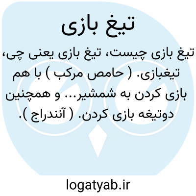تیغبازی. ( حامص مرکب ) با هم بازی کردن به شمشیر... و همچنین دوتیغه بازی کردن. ( آنندراج ). شمشیربازی. نبرد کردن با شمشیر: