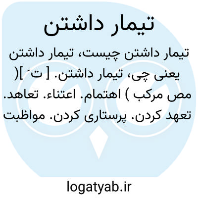 آن به که تو تیمار او نداری.ناصرخسرو.آن را که به تدبیر نگاه داشتن دندانها حاجت باشد ده معنی را تیمار باید داشت. یکی آنکه... ( از ذخیره خوارزمشاهی از یادداشت بخط مرحوم دهخدا ). بزرگان پارس او را بپروردند و تیمار میداشتند. ( فارسنامه ابن البلخی ص 111 ). باید که ولایت ماوراءالنهر نگاهداری که سرحد دشمن است ورعیت را تیمار داری. ( تاریخ بخارا ص 103 ). مرغان رابه زن سپرد تا تیمار بهتر دارد. ( کلیله و دمنه ). و بیست شخص اینجا تیمار اسباب و اولاد ایشان می داشتند. ( تاریخ بیهق ). و عامه شهر کسان ناصر را تیمار داشتند و مراعات واجب دانستند. ( تاریخ طبرستان ). اهل گرگان را تیمار داشت و خراج برداشت. ( تاریخ طبرستان ).