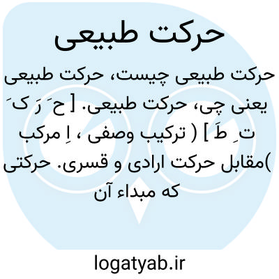 حرکت طبیعی. [ ح َ رَ ک َ ت ِ طَ ] ( ترکیب وصفی، اِ مرکب )مقابل حرکت ارادی و قسری. حرکتی که مبداء آن بسبب امر خارج نبود، و شعور و اراده نیز با وی نباشد، مانند حرکت سنگ از بالا به پائین. ( از تعریفات جرجانی ).