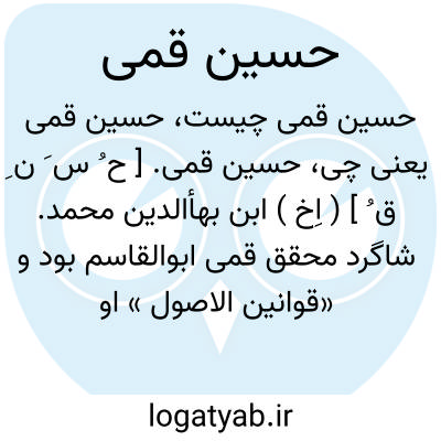 حسین قمی. [ ح ُ س َ ن ِ ق ُ ] ( اِخ ) ابن بهأالدین محمد. شاگرد محقق قمی ابوالقاسم بود و «قوانین الاصول » او را شرح کرد، که در حاشیه قوانین در 1303هَ. ق. چاپ شده است. ( ذریعه ج 4 ص 494 و ج 6 ص 176 ).
