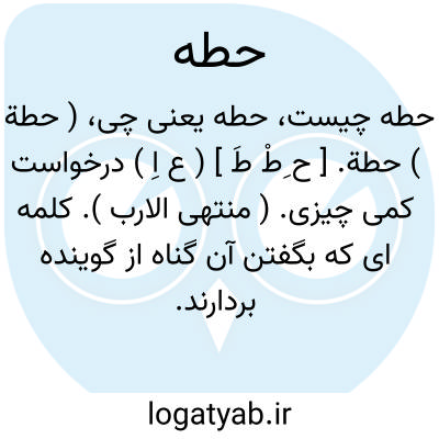 ( حطة ) حطة. [ ح ِطْ طَ ] ( ع اِ ) درخواست کمی چیزی. ( منتهی الارب ). کلمه ای که بگفتن آن گناه از گوینده بردارند. کلمه ای که بگفتن آن گناه از بنده فرونهند. ( مهذب الاسماء ). و معنی آن حط عنا ذنوبنا یا اوزارنا باشد. ( منتهی الارب ). || بعضی گفته اند، حطه کلمه شهادت است یعنی کلمه لا اله الا اﷲ. ظاهراًاین کلمه عبری یا نبطی است و آن مانند کلمه طلب آمرزش استغفراﷲ یا کلمه توبه و انابه، اتوب الی اﷲ و امثال آن بوده است و مقتبس است از آیه شریفه: و اذ قلنا ادخلوا هذه القریة فکلوا منها حیث شئتم رغداً و ادخلوا الباب سجداً و قولوا حطّة نغفر لکم خطایا کم وسنزیدالمحسنین. فبدّل الذین ظلموا قولاً غیر الذی قیل لهم فانزلنا علی الذین ظلموا رجزاً من السماء بما کانوا یفسقون. ( قرآن 58/2-59 ). و به استهزاء بنی اسرائیل به کلمه حنطه به معنی گندم گردانیده اند و از این رو از آسمان بلا بر آنان نازل شده است. || نام ماه رمضان در انجیل یا در غیر آن. ( منتهی الارب ). || باب حطة. ( منتهی الارب ) ( آنندراج ).