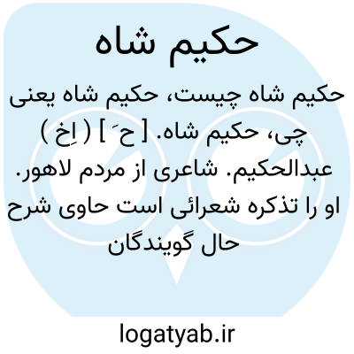 حکیم شاه. [ ح َ ] ( اِخ ) عبدالحکیم. شاعری از مردم لاهور. او را تذکره شعرائی است حاوی شرح حال گویندگان معاصر خود او که در اورنگ آباد به سال 1175 هَ. ق. بنام «مردم دیده » بپایان برده است.