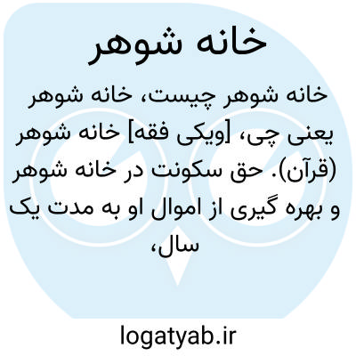 [ویکی فقه] خانه شوهر (قرآن). حق سکونت در خانه شوهر و بهره گیری از اموال او به مدت یک سال، از جمله حقوق زنان شوهر مرده است."والذین یتوفون منکم ویذرون ازوجـا وصیة لازوجهم متـعـا الی الحول غیر اخراج.. و کسانی که از شما در آستانه مرگ قرار می گیرند و همسرانی از خود به جا می گذارند، باید برای همسران خود وصیت کنند که تا یک سال، آنها را (با پرداختن هزینه زندگی) بهره مند سازند "