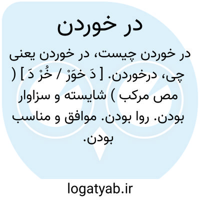 درخوردن. [ دَ خوَرْ / خُرْ دَ ] ( مص مرکب ) شایسته و سزاوار بودن. روا بودن. موافق و مناسب بودن. ( ناظم الاطباء ). درخور بودن. متناسب بودن. ملائم بودن: