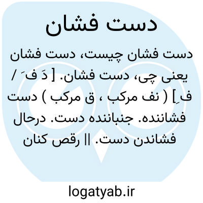 دست فشان. [ دَ ف َ / ف ِ] ( نف مرکب، ق مرکب ) دست فشاننده. جنباننده دست. درحال فشاندن دست. || رقص کنان: