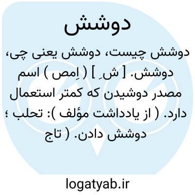 دوشش. [ ش ِ ] ( اِمص ) اسم مصدر دوشیدن که کمتر استعمال دارد. ( از یادداشت مؤلف ): تحلب؛ دوشش دادن. ( تاج المصادر بیهقی ). رجوع به دوشیدن شود.