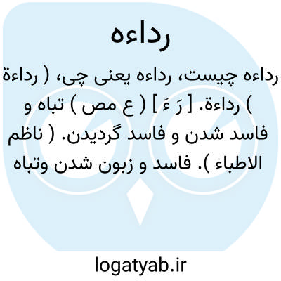 ( رداءة ) رداءة. [ رَ ءَ ] ( ع مص ) تباه و فاسد شدن و فاسد گردیدن. ( ناظم الاطباء ). فاسد و زبون شدن وتباه گشتن. ( از منتخب و صراح اللغة از غیاث اللغات )( آنندراج ). تباه شدن. ( صراح اللغة ) ( منتهی الارب ) ( از المنجد ) ( آنندراج ). بد شدن. ( تاج المصادر بیهقی ). فاسد شدن. و صفت آن رَدی است. ( از اقرب الموارد ).