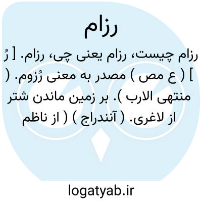 رزام. [ رِ ] ( ع ص ) مرد شدید صعب. ج، رُزَّم. ( از اقرب الموارد ). مرد درشت سخت. ( ناظم الاطباء ) ( منتهی الارب ) ( آنندراج ). || ج ِ رازم. ( منتهی الارب ). رجوع به رازم شود.