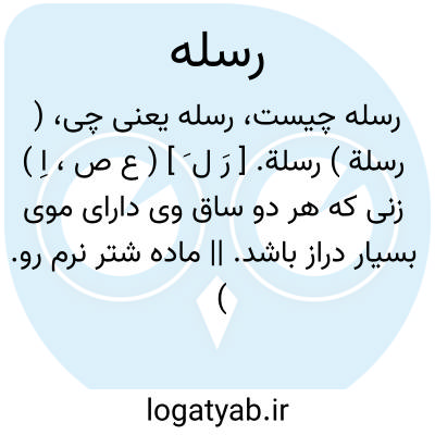 ( رسلة ) رسلة. [ رَ ل َ ] ( ع ص، اِ ) زنی که هر دو ساق وی دارای موی بسیار دراز باشد. || ماده شتر نرم رو. ( منتهی الارب ). ناقه نرم رو. ( از اقرب الموارد ).