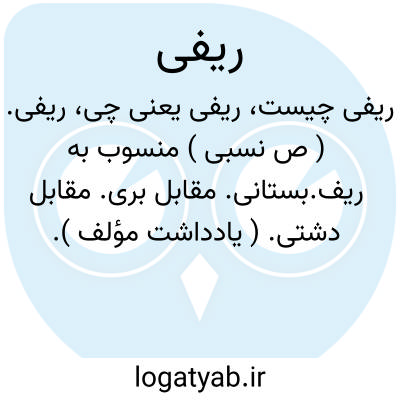 ریفی. ( ص نسبی ) منسوب به ریف.بستانی. مقابل بری. مقابل دشتی. ( یادداشت مؤلف ).