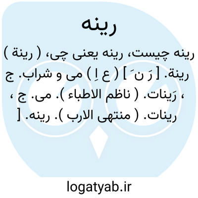 ( رینة ) رینة. [ رَ ن َ ] ( ع اِ ) می و شراب. ج، رَینات. ( ناظم الاطباء ). می. ج، رینات. ( منتهی الارب ).