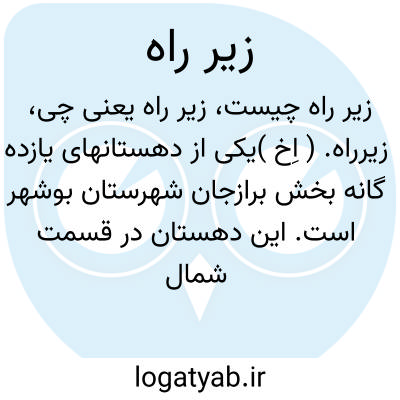 زیرراه. ( اِخ )یکی از دهستانهای یازده گانه بخش برازجان شهرستان بوشهر است. این دهستان در قسمت شمال و مرکز بخش قرار گرفته. هوای آن گرم و مرطوب است. آب مشروب و زراعی از رودخانه دالکی تأمین میگردد. دهستان مزبور از 9 آبادی بزرگ و کوچک تشکیل شده و قراء مهم آن عبارتند از سعدآباد، نظرآقائی، درودگاه، جتوط، بنه جاموشی، بیپراء، تل قاتل، تل سرکوه، زیرراه. مرکز دهستان ده سعدآباد است. سد معروف شبانکاره روی رودخانه شاپور درمقابل این ده بنا شده است. سکنه دهستان کلاً در حدود 8500 تن میباشد. ( از فرهنگ جغرافیایی ایران ج 7 ).