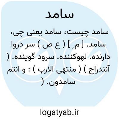 سامد. [ م ِ ] ( ع ص ) سر دروا دارنده. لهوکننده. سرود گوینده. ( آنندراج ) ( منتهی الارب ): و انتم سامدون. ( سوره النجم آیه 61 ). بازیگر. ( ملخص اللغات ). || ( اِ ) بازی. ( آنندراج ) ( منتهی الارب ).