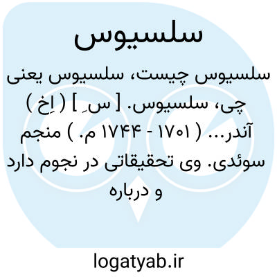 سلسیوس. [ س ِ ] ( اِخ ) آندر... ( 1701 - 1744 م. ) منجم سوئدی. وی تحقیقاتی در نجوم دارد و درباره ساخت میزان الحراره صددرجه ای پیشقدم است. ( فرهنگ فارسی معین ).