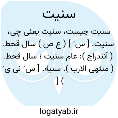 سنیت. [ س َ ] ( ع ص ) سال قحط. ( آنندراج ): عام سنیت؛ سال قحط. ( منتهی الارب ).