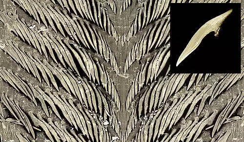 سوهانک (زیست شناسی). سوهانَک ( radula ) یک ساختار کالبدشناختی است که نرم تنان برای تغذیه از آن استفاده می کنند و نوعی زبان این جانوران به شمار می آید. سوهانک دندانک های کوچک و نوارهای کیتینی دارد که معمولاً برای تراشیدن و بریدن مواد غذایی پیش از هدایت این مواد به مری به کار می رود.