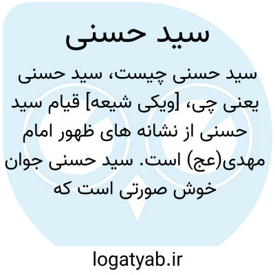 [ویکی شیعه] قیام سید حسنی از نشانه های ظهور امام مهدی(عج) است. سید حسنی جوان خوش صورتی است که از طرف دیلم (گیلان و غرب مازندران) خروج خواهد کرد و در حالی که با صدای بلند فریاد می زند که به فریاد قائم آل محمّد(ص) برسید، مردان شجاع و قوی دل (گنج های طالقان) او را یاری خواهند کرد. او از مکان خود تا کوفه، زمین را از وجود ظالمان و کافران پاک می کند. این پیشرفت مقارن با خروج حضرت مهدی(عج) از مکه است که امام به کوفه می آید و او به امام زمان(ع) ملحق می شود.