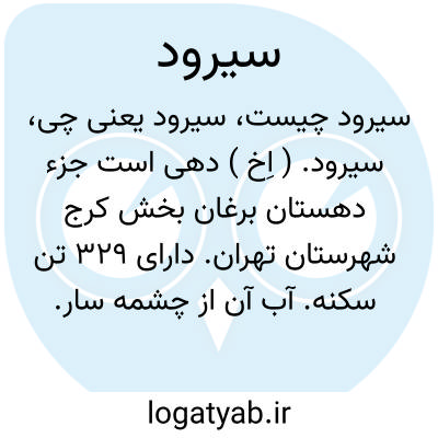 سیرود. ( اِخ ) دهی است جزء دهستان برغان بخش کرج شهرستان تهران. دارای 329 تن سکنه. آب آن از چشمه سار. محصول آنجا غلات، لبنیات و عسل می باشد. ( از فرهنگ جغرافیائی ایران ج 1 ).