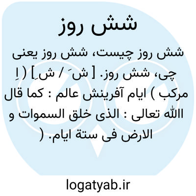 شش روز. [ ش َ / ش ِ] ( اِ مرکب ) ایام آفرینش عالم: کما قال اﷲ تعالی: الذی خلق السموات و الارض فی ستة ایام. ( قرآن 4/57 ). ( غیاث اللغات ) ( از آنندراج ). اشاره به شش روزی است که آفرینش عالم در آن شش روز شد. ( برهان ):