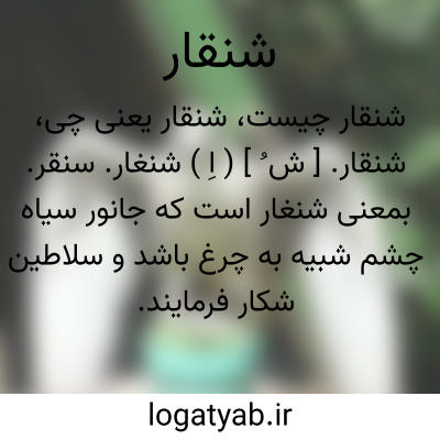 شنقار. [ ش ُ ] ( اِ ) شنغار. سنقر. بمعنی شنغار است که جانور سیاه چشم شبیه به چرغ باشد و سلاطین شکار فرمایند. ( برهان ). نام طائر شکاری سفیدرنگ برابر با عقاب لیکن در قوت از عقاب زیاده و بسیار کمیاب است و این لفظ ترکی است و در رسم الخط ترکی شونقار نویسند. ( از غیاث اللغات ) ( آنندراج ). و رجوع به شنغار شود.