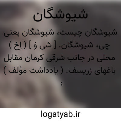 شیوشگان. [ شی وَ ] ( اِخ ) محلی در جانب شرقی کرمان مقابل باغهای زریسف. ( یادداشت مؤلف ): زمینهایی که اکنون به شاهیجان و گازرگاه معروف است از آبی عظیم از منبع کوه شیوشگان در قدیم الزمان مشروب می شد و مرغزار گشته بود. ( سمط العلی ).