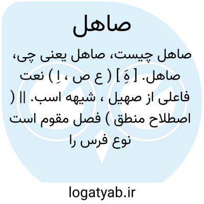 صاهل. [ هَِ ] ( ع ص، اِ ) نعت فاعلی از صهیل، شیهه اسب. || ( اصطلاح منطق ) فصل مقوم است نوع فرس را همچنان که ناطق فصل است مر انسان را و نابح کلب را و ناهق خر را. || شتر که دست و پا را بسیار بر زمین زند و بگزد و بانگ نکندبهیچ یکی ( کسی را نخواند ) از جهت عزت نفس خود در اندرون او بانگی باشد مانند بانگ باد. ( منتهی الارب ).