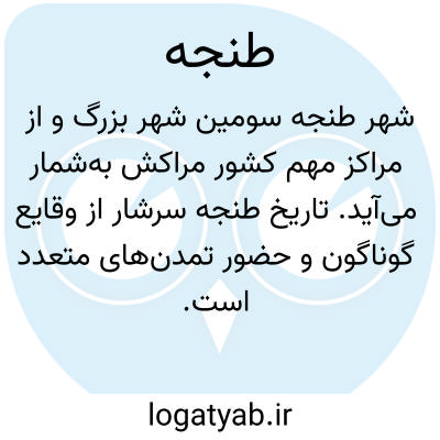 ( طنجة ) طنجة. [ طَ ج َ ] ( اِخ ) شهری است بکرانه دریای مغرب. ( منتهی الارب ). شهری است درجانب مغرب نزدیک بکوه قاف. ( برهان ). شهری است در بن کوه قاف. ( معرب تنگه ) نام شهری، بندر مراکش کنار جبل الطارق. نام شهری است بر کنار دریای مغرب نزدیک تطاون. نام شهری از بلاد مغرب که تا مهدیه شش فرسنگ میان دارد، و اصل آن تنگه فارسی است. ناحیتی است [ بمغرب ] و قصبه آن فاس است. ( حدود العالم ). نام شهر معروف، و کلمه غیرعربی است. ( متن المعرب ص 223 ). یاقوت و فیروزآبادی هر کدام بنوبه خود این لفظ را در معجم البلدان و قاموس بصورت بالا آورده اند. ابن منظور افریقی در لسان العرب بصورت طجنة ایراد کرده، و در ضمن کلمه «طاجن » گوید: قال اللیث: اهملت الجیم و الطاء فی الثلاثی الصحیح و وجدنا مستعملة بعضها عربیة و بعضها معربة فمن المعرب قولهم «طجنة» بلد معروف. و ظاهراً تقدیم جیم بر نون، ناشی از خطای تصحیح کنندگان لسان العرب در مطبعه بولاق باشد که گمان برده اند طنجة شاهد است برای الفاظ مختوم به نون !! و تأیید این قول آن است که ابن درید نیز پیروی لیث را کرده ( 2:100 ) و گفته است «ج طم » اهملت.و البته «طج ن » هم غیرمستعمل است. اما طنجه اسم شهر معروف عربی نیست. ( ترجمه از حاشیه ص 223 المعرب ).