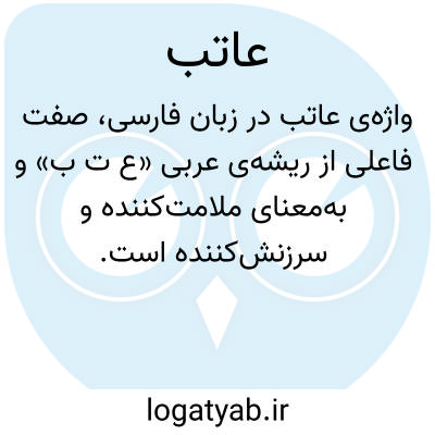 واژه‌ی عاتب در زبان فارسی، صفت فاعلی از ریشه‌ی عربی «ع ت ب» و به‌معنای ملامت‌کننده و سرزنش‌کننده است. این کلمه در متون کهن پزشکی و ادبی، به شخصی اطلاق می‌شود که دیگری را به دلیل خطا یا تقصیری مورد سرزنش و بازخواست قرار می‌دهد. کاربرد آن عموماً در حیطه‌ی بیان حالت فردی است که با گفتار یا رفتار خود، ناخرسندی و انتقاد خویش را آشکار می‌سازد.