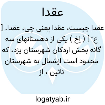عقدا. [ ع َ ] ( اِخ ) یکی از دهستانهای سه گانه بخش اردکان شهرستان یزد، که محدود است ازشمال به شهرستان نائین، از جنوب به دهستان ندوشن بخش خضرآباد، از مشرق به دهستان اردکان، از مغرب به بخش نائین و خضرآباد. آب مزروعی قراء از قنوات تأمین میشود و محصول عمده آن غلات و انار است. این دهستان از بیست آبادی بزرگ و کوچک تشکیل شده و جمعیت آن 5050 تن است. قرای مهم این دهستان عبارتند از: عقدا، مزرعه نو - هفتادر. ( از فرهنگ جغرافیایی ایران ج 10 ).