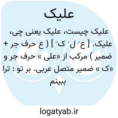 علیک. [ ع َ ل َ ک َ ] ( ع حرف جر + ضمیر ) مرکب از «علی » حرف جر و «ک » ضمیر متصل عربی. بر تو: