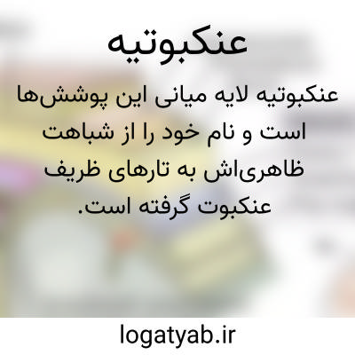 ( عنکبوتیة ) عنکبوتیة. [ ع َ ک َ تی ی َ ] ( ع ص نسبی ) مؤنث عنکبوتی، که منسوب به عنکبوت است. رجوع به عنکبوت شود. || ( اِ ) صفحه بالایین اسطرلاب که مدار اکثر احکام اسطرلاب بر آن است. ( آنندراج ) ( غیاث اللغات ). رجوع به عنکبوت اسطرلاب و اسطرلاب و عنکبوتی شود. || طبقه چهارم از طبقات چشم، و آن غشای رقیق است مانند نسیج عنکبوت. ( آنندراج ) ( غیاث اللغات ). عنکبوتیه،دومین پرده از پرده های سه گانه پوشش خارجی محور دماغی نخاعی است که پرده نازکی است از نسج هم بند که مستقیماً روی سطح داخلی سخت شامه قرار گرفته است و با آن فضای لنفاوی را محدود میسازد و بنام فضای زیر سخت شامه یا فوق عنکبوتیه نامیده میشود. این فضا در همه سطح داخلی سخت شامه وجود دارد. عده زیادی از دانشمندان، عنکبوتیه را قسمی پرده سروزی میدانند که دارای دو ورقه جداری و احشائی است. ورقه جداری شامه عبارت از طبقه درون پوششی است که سطح داخلی سخت شامه را می پوشاند و ورقه درونی یا احشائی آن عبارت از ورقه عنکبوتیه مطلق است که در روی سطح خارجیش یک غشاء درون پوششی دیده میشود و حفره بسته ای که بواسطه این دو ورقه درون پوششی محدود گشته همان حفره سروزی است. قسمتی از پرده عنکبوتیه که جزو پوشش های نخاع محسوب میشود به عنکبوتیه نخاعی موسوم است و قسمتی که جزو پوشش های دماغی است عنکبوتیه دماغی نام دارد. میان شامه. ( فرهنگ فارسی معین ). و رجوع به عنکبوتیه دماغی و عنکبوتیه نخاعی شود.