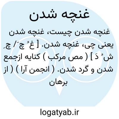 غنچه شدن. [ غ ُ چ َ/ چ ِ ش ُ دَ ] ( مص مرکب ) کنایه ازجمع شدن و گرد شدن. ( انجمن آرا ) ( از برهان قاطع ). کنایه از خویش را فراهم آوردن. ( آنندراج ):