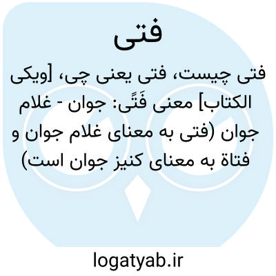 تازه جوان. در دختر فتاة گویند. و به طور کنایه به غلام و کنیز (برده) گفته می‏شود (مفردات). در قرآن مجید به حر و آزاد اطلاق شده است. گفتند جوانی ابراهیم نام را شنیدیم که خدایان را به بدی یاد می‏کرد و در آیه. مراد از فتی غلام است یعنی زنانی در شهر گفتند زن عزیز مصر از غلامش کام می‏خواهد. جمع فتی فتیان و فتیه است مثل. به غلامانش گفت سرمایه آنها را در بارهایشان بگذارید و مثل. آنها جوان هایی بودند که به پروردگارشان ایمان آوردند و بر هدایتشان افزودیم. جمع فتاة فتیات است. کنیزانتان را بر زنا مجبور نکنید اگر عفت اختیار کنند.