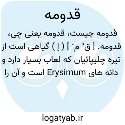 قدومه. [ ق ُ م َ ] ( اِ ) گیاهی است از تیره چلیپائیان که لعاب بسیار دارد و دانه های Erysimum است و آن را قدومه شیرازی یا تودری میگویند، ولی دانه های Thlaspis نیز بنام قدومه کوهی به همان مصارف میرسد. ( گیاه شناسی گل گلاب ص 209 ).