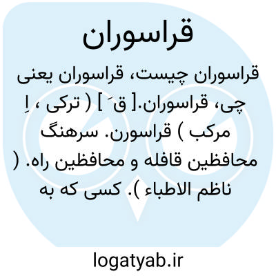 قراسوران.[ ق َ ] ( ترکی، اِ مرکب ) قراسورن. سرهنگ محافظین قافله و محافظین راه. ( ناظم الاطباء ). کسی که به سرکردگی فوجی از طرف سلاطین در راهها بنشیند تا قوافل را از منازل مخوفه محفوظ بگذارند و معنی ترکیبی آن در ترکی سپاهی راننده، قراسپاهی و سورن راننده: