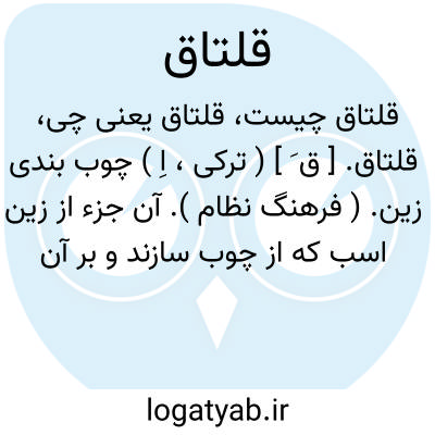 قلتاق. [ ق َ ] ( ترکی، اِ ) چوب بندی زین. ( فرهنگ نظام ). آن جزء از زین اسب که از چوب سازند و بر آن نشینند. ( ناظم الاطباء ). پوستی باشد که بر میان حنای زین بکشند. و حنای زین را هم گویند. ( سنگلاخ: قالتاق ): ای همچو تو مبهم پدر بینی تو قلتاق پسر برادر دینی تو صد فیل به زیر بار یک فرد کشند دفتربندان کشور بینی تو.حکیم شفائی ( از آنندراج ).رجوع به قالتاق و غلتاق و غلطاق شود.