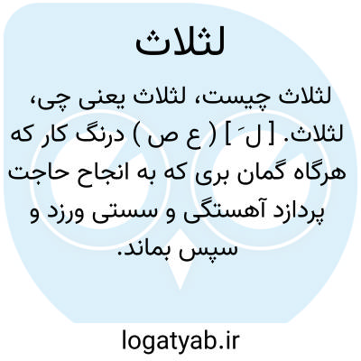 لثلاث. [ ل َ ] ( ع ص ) درنگ کار که هرگاه گمان بری که به انجاح حاجت پردازد آهستگی و سستی ورزد و سپس بماند. لثلاثة. ( منتهی الارب ).