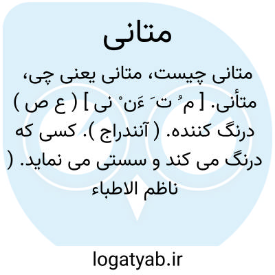 متأنی. [ م ُ ت َ ءَن ْ نی ] ( ع ص ) درنگ کننده. ( آنندراج ). کسی که درنگ می کند و سستی می نماید. ( ناظم الاطباء ). آن که در امری درنگ و تأمل کند. درنگ کننده. || انتظارنماینده. ( آنندراج ). || کسی که از روی آگاهی و دانائی درهر کاری عمل می کند. || بردبار و بافکر درکردن کارها. ( ناظم الاطباء ). و رجوع به تأنی شود.
