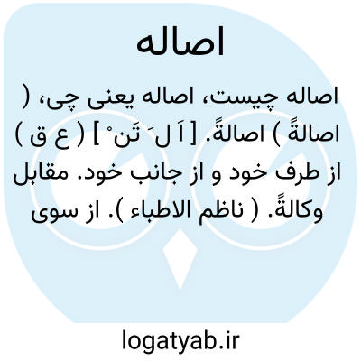 ( اصالةً ) اصالةً. [ اَ ل َ تَن ْ ] ( ع ق ) از طرف خود و از جانب خود. مقابل وکالةً. ( ناظم الاطباء ). از سوی خود. اصلی و بدون نیابت از کسی. ( فرهنگ نظام ).