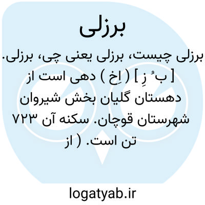برزلی. [ ب ُ زِ ] ( اِخ ) دهی است از دهستان گلیان بخش شیروان شهرستان قوچان. سکنه آن 723 تن است. ( از فرهنگ جغرافیایی ایران ج 9 ).