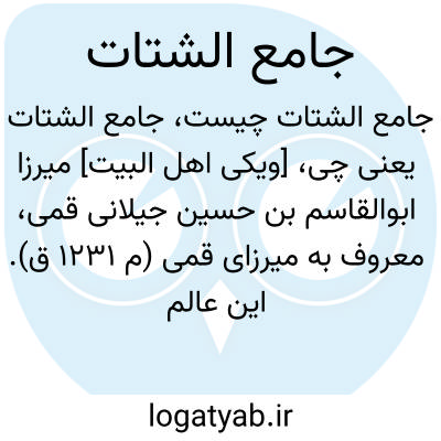 [ویکی نور] جامع الشتات، کتابی است به زبان عربی در موضوعات متفرق کلامی و فلسفی و...نوشته ملا محمد اسماعیل خواجویی، از عالمان شیعی قرن دوازدهم هجری.