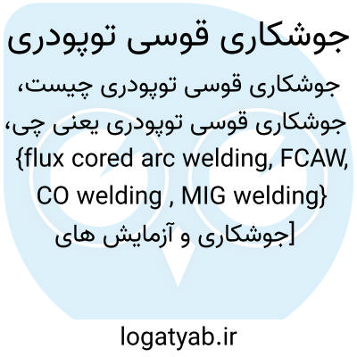 {flux cored arc welding, FCAW, CO welding , MIG welding} [جوشکاری و آزمایش های غیرمخرب] نوعی جوشکاری قوسی بدون اعمال فشار که در آن بین الکترود لوله ای شکل به عنوان فلز پرکننده و حوضچۀ جوش قوس ایجاد می شود و دود و سربارۀ حاصل از تجزیۀ پودر با استفاده از گاز محافظ یا بدون آن مانع از ترکیب شدن فلز مذاب با اکس...