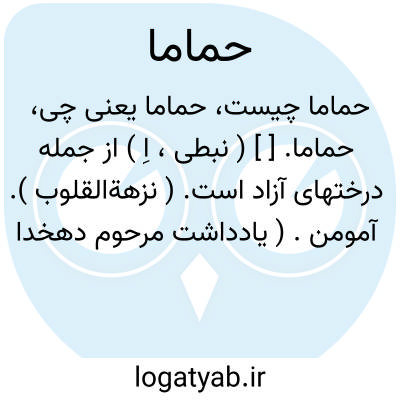 حماما. [ ] ( نبطی، اِ ) از جمله درختهای آزاد است. ( نزهةالقلوب ). آمومن. ( یادداشت مرحوم دهخدا ). رجوع به تحفه حکیم مؤمن و ضریر انطاکی شود.